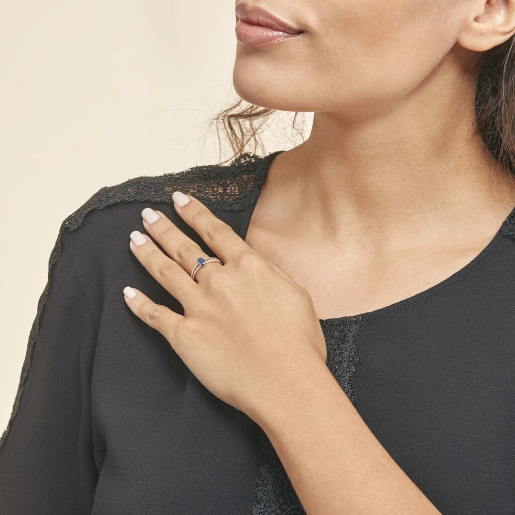 Bague Or Blanc 375/1000 Saphir Central 0.6cts Corps De Bague Double Semi Pavage Diamants
