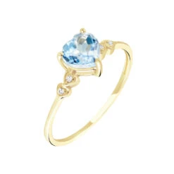Bague Or Jaune 375/1000 Topaze Forme Coeur Accompagne Oxydes De Zirconium