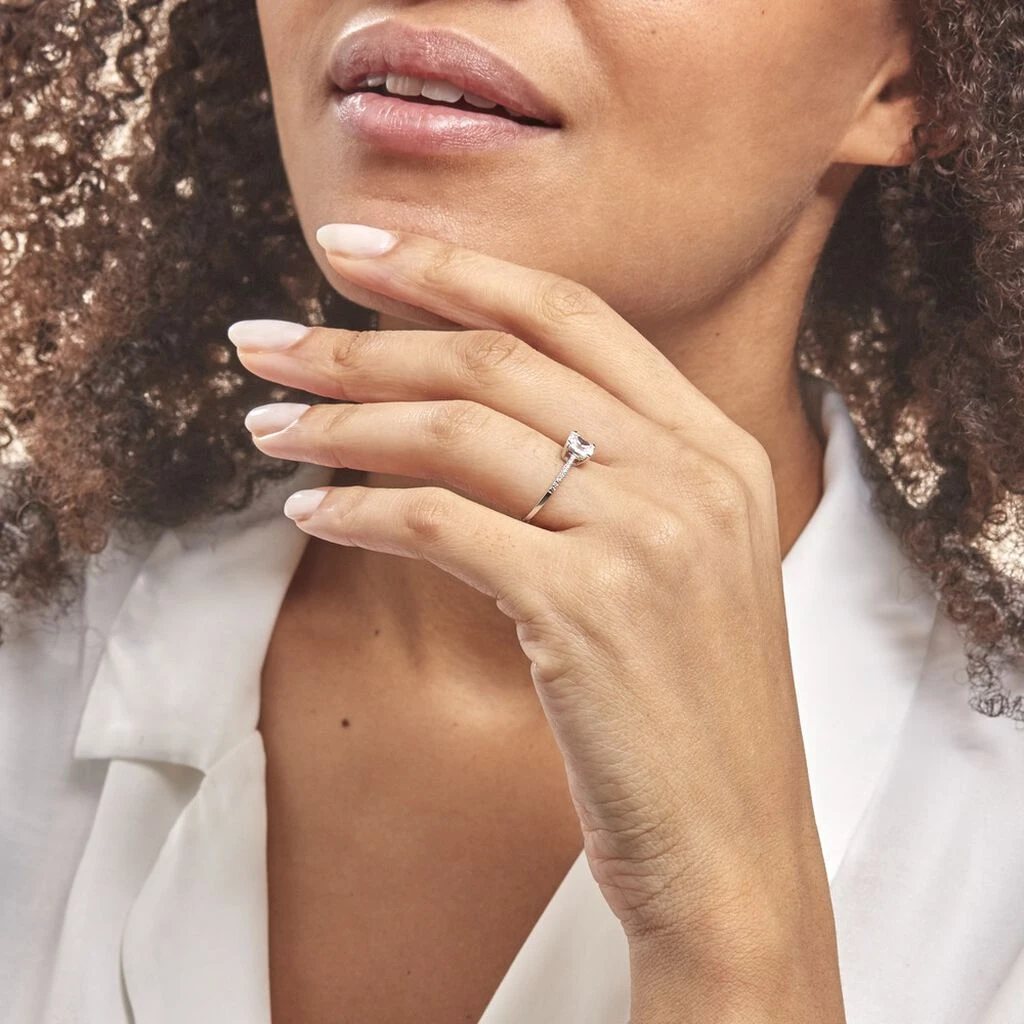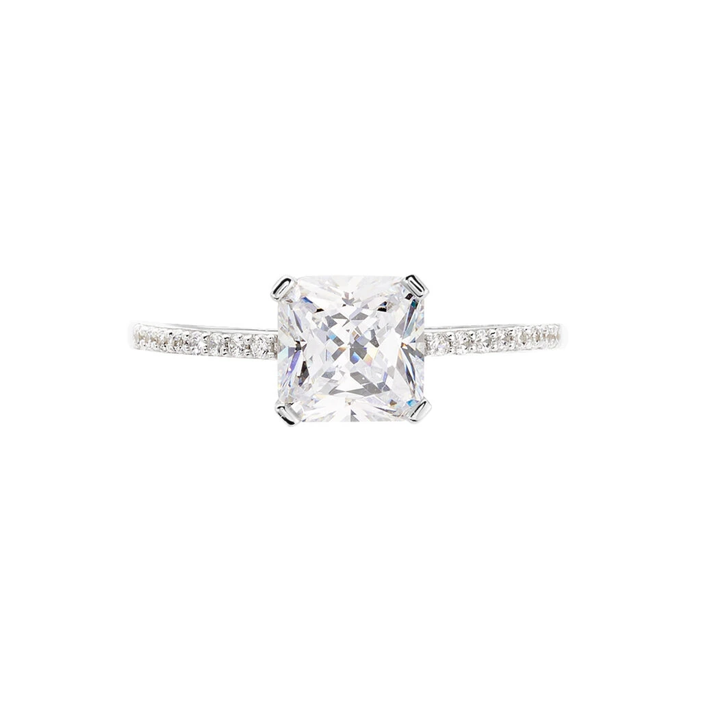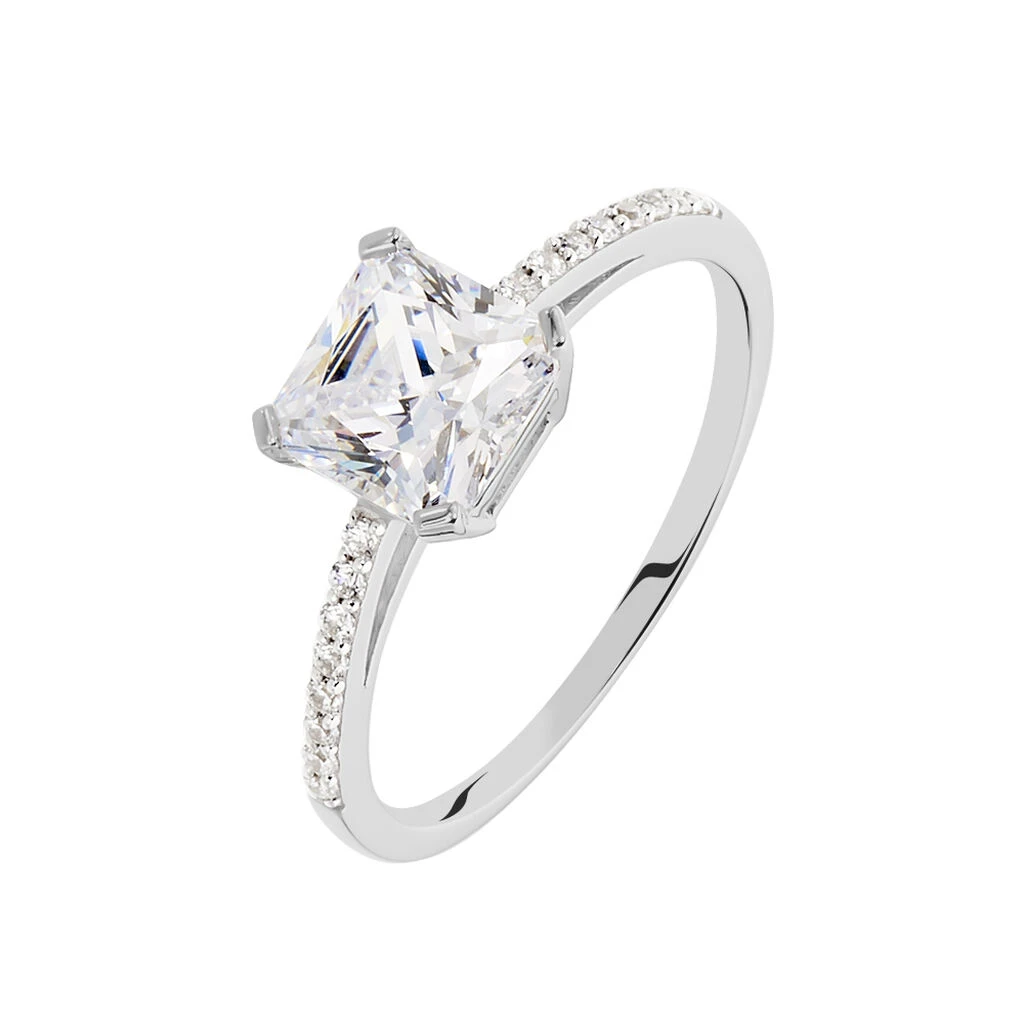 Bague Or Blanc 375/1000 Sylvia Oxydes De Zirconium Central Carre Et Pavage