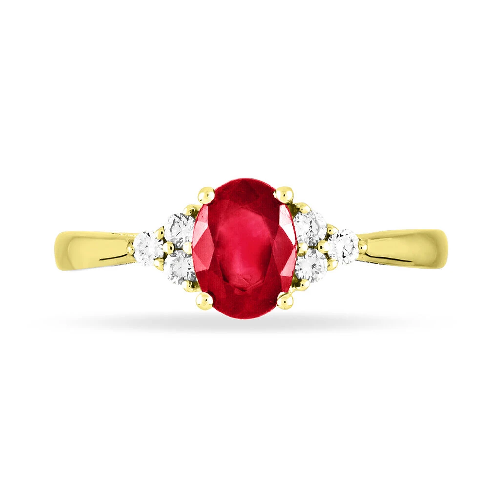 Bague Or Jaune 375/1000 Rubis Central Oval 4 Griffes 0.58cts Et Diamants