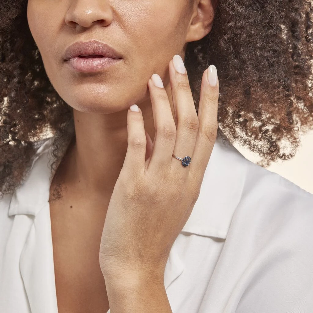 Bague Or Blanc 375/1000 Saphir Central Entourage Saphirs Corps De Bague Pavage Diamants