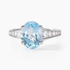 Bague Or Blanc 375/1000 Topaze Ovale Corps De Bague Accompagne Oxydes De Zirconium