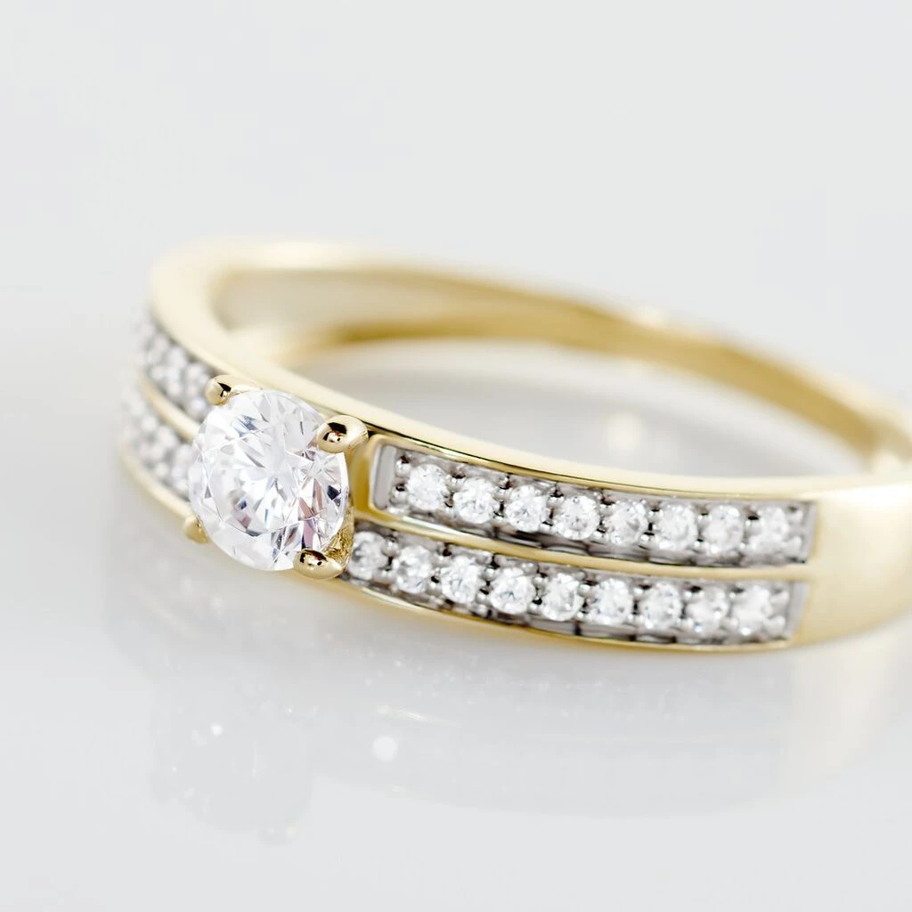 Bague Solitaire Accompagné Or Jaune 375/1000 Oxyde De Zirconium Serti Griffes 0.45cts