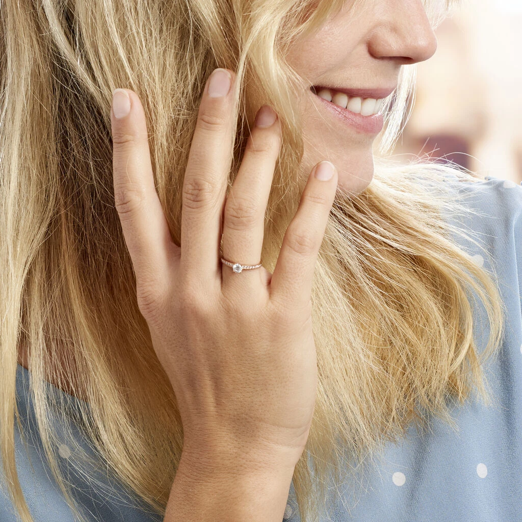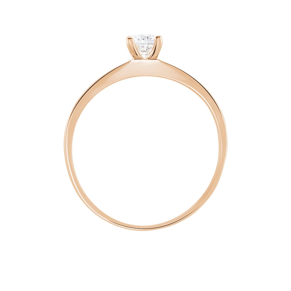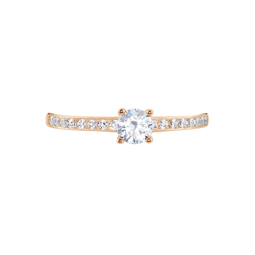 Bague Or Rose 375/1000 Oxyde De Zirconium Blanc Central Accompagne D’oxydes De Zirconium Serti Rail