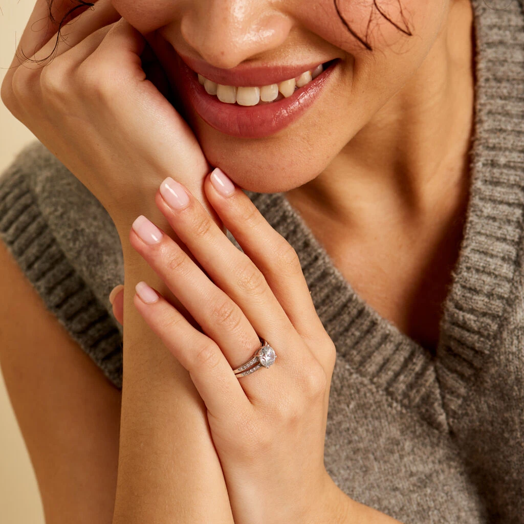 Véritable symbole d’élégance, ce solitaire en or blanc vous conquerra au premier coup d’œil. Elle est rayonnante avec son oxyde de zirconium central et le pavage de zircons blancs en double rang. Délicat, son anneau ajouré lui confère davantage d’originalité. Quel que soit le style que vous adoptez, cette bague saura vous sublimer.