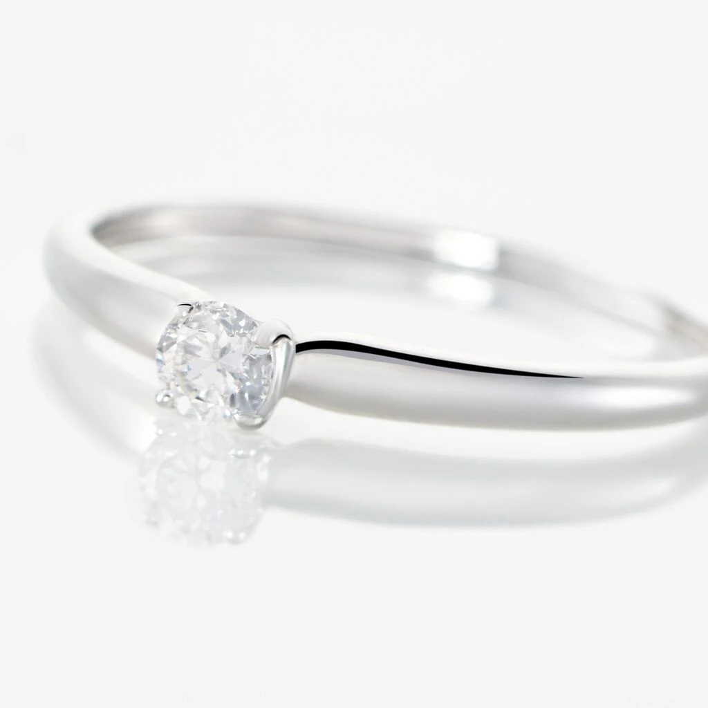 Bague Solitaire Or Blanc 375/1000 Diamant Central 0.15cts Serti 4 Griffes