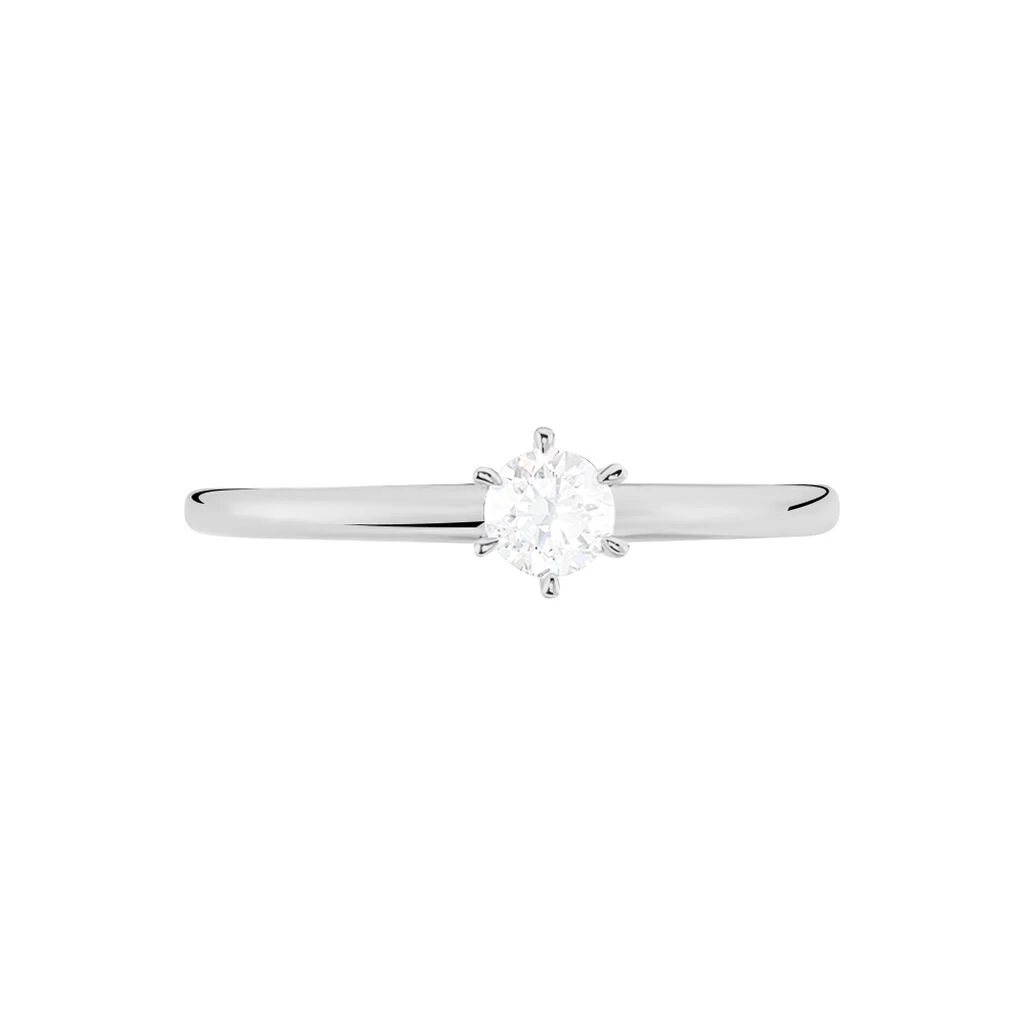 Solitaire Or Blanc 750/1000 Diamant 0.2cts Serti 6 Griffes