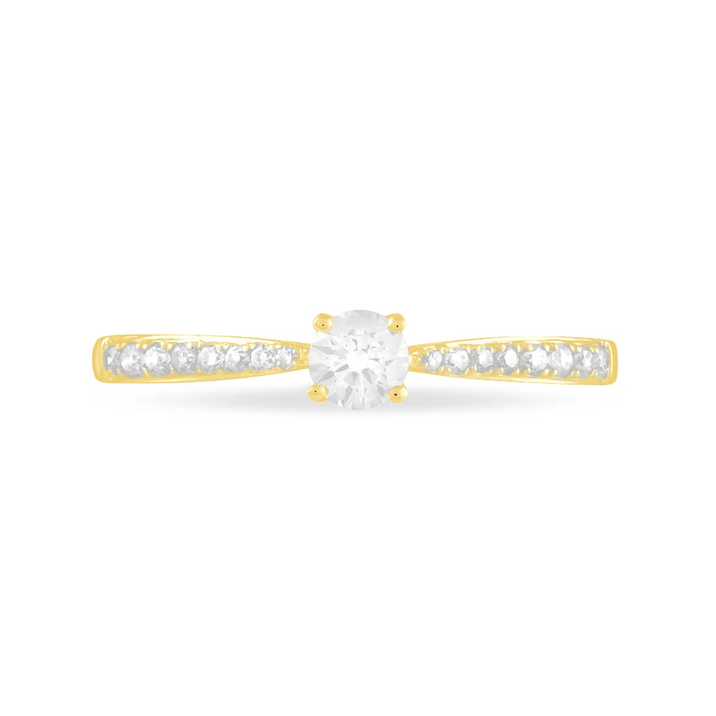 Solitaire Or Jaune 750/1000 Diamant Central 0.15cts Serti Griffes Accompagnes Diamants