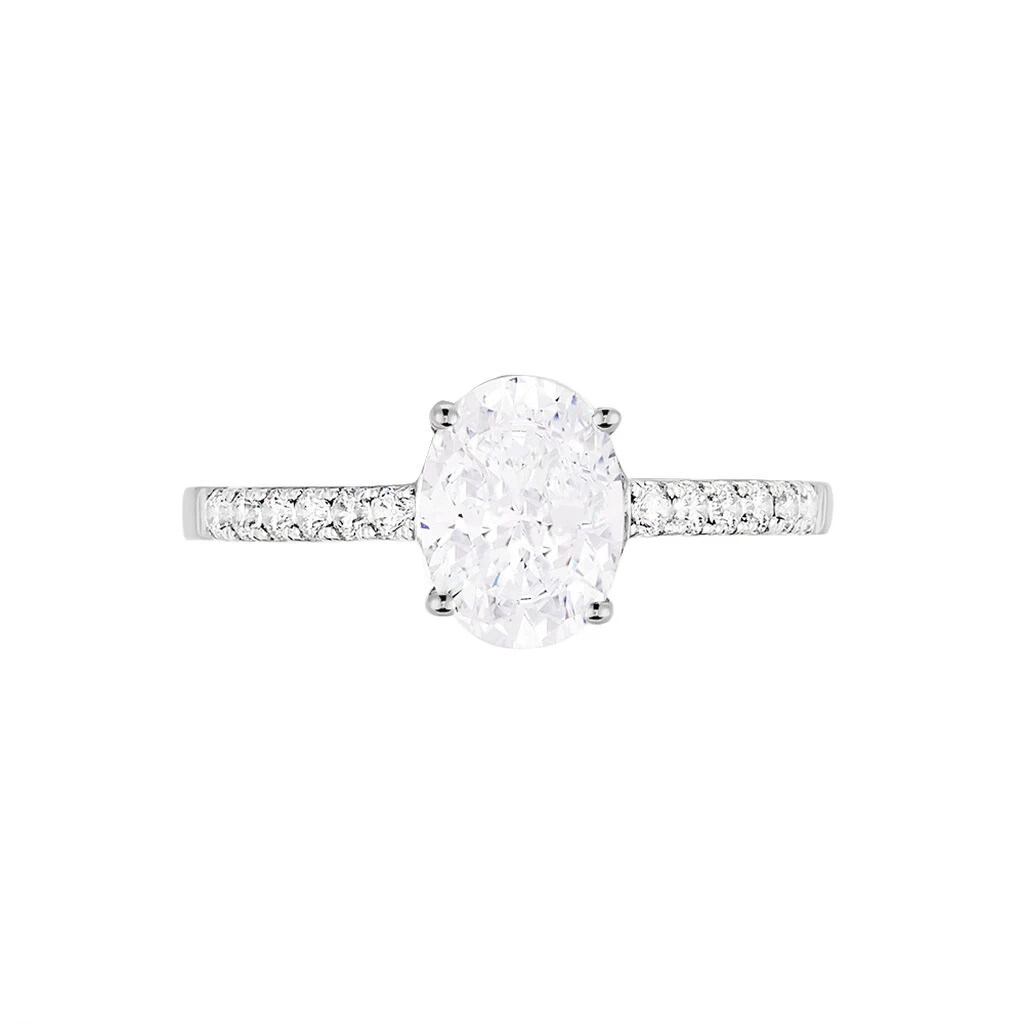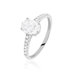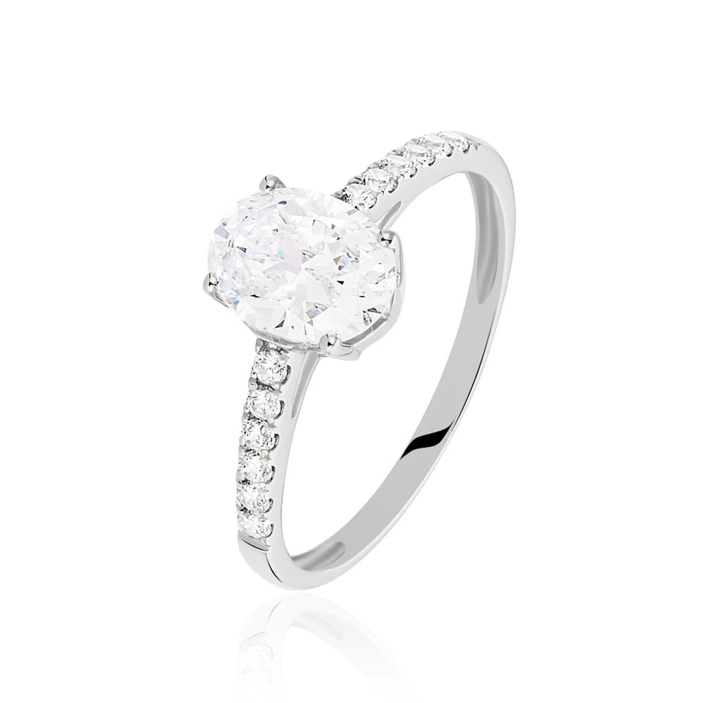 Bague Solitaire Oval Or Blanc Oxyde De Zirconium