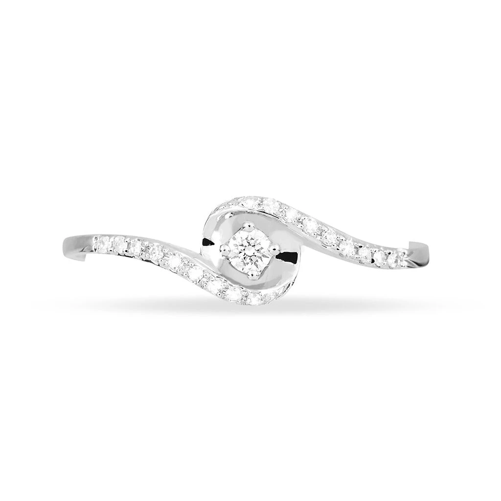 Bague Or Blanc 375/1000 Diamant 0.05cts Central Accompagne Diamants Effet Vrille Pm