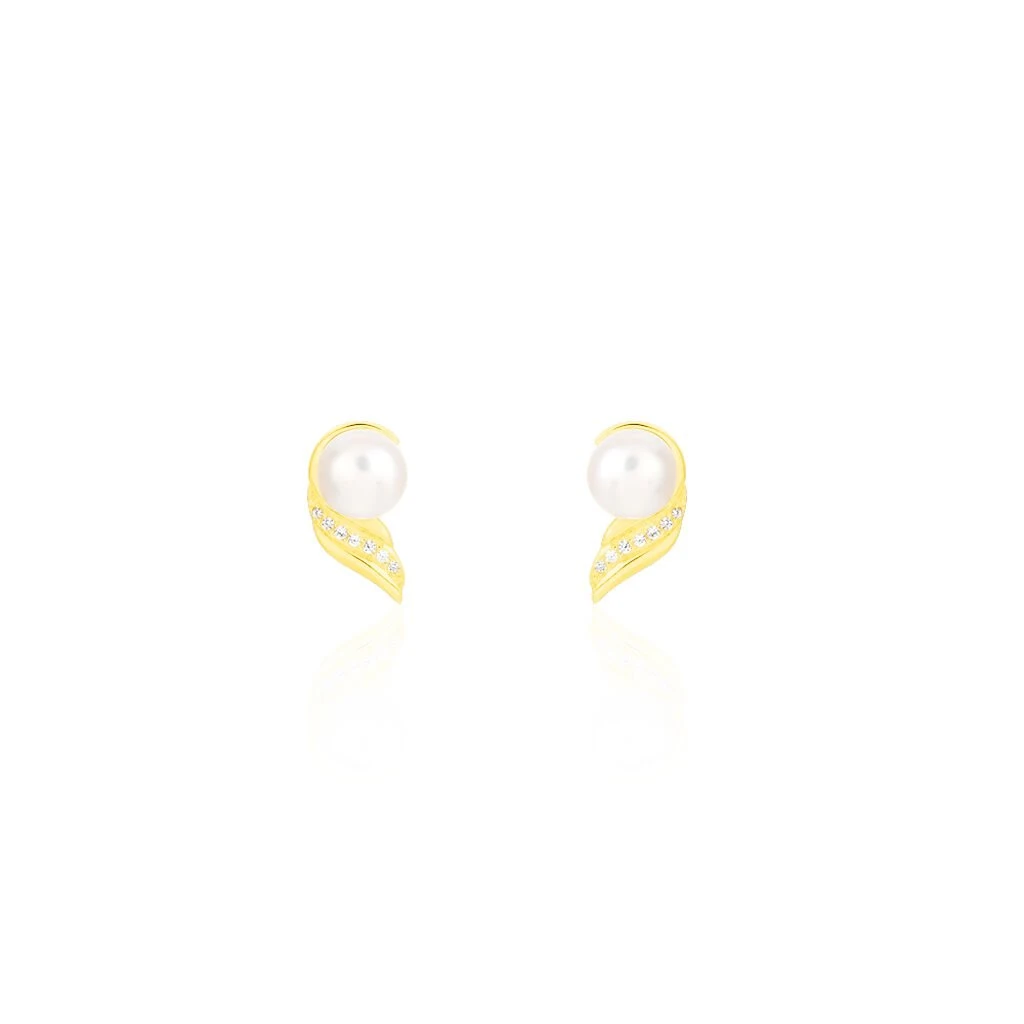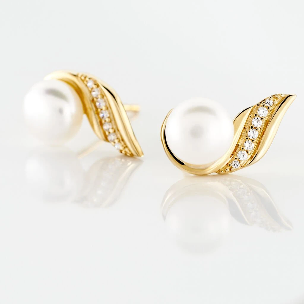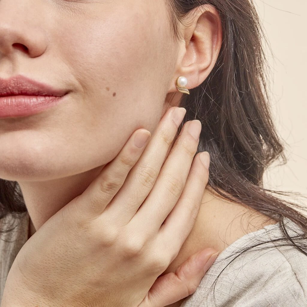 Boucles D’oreilles Or Jaune 375/1000 Perle De Culture Nacre 6mm Et Oxydes De Zirconium