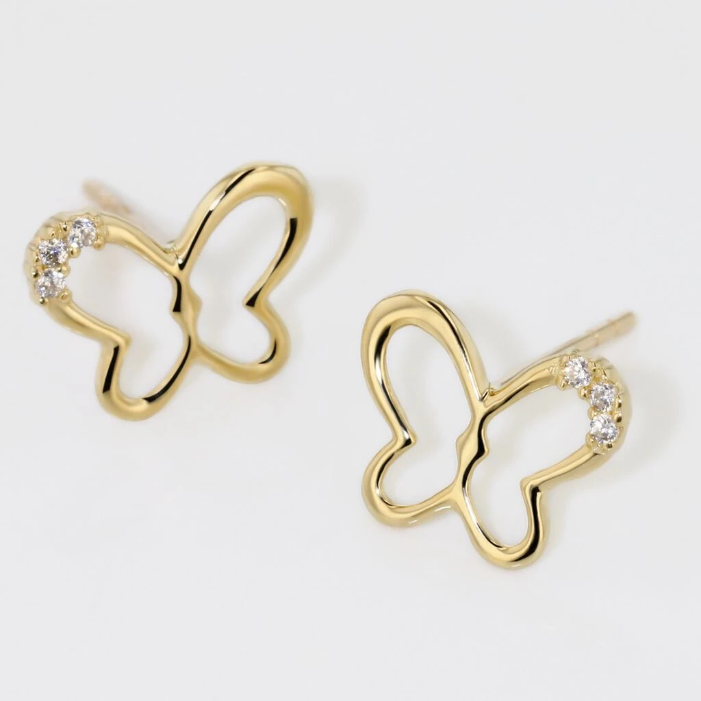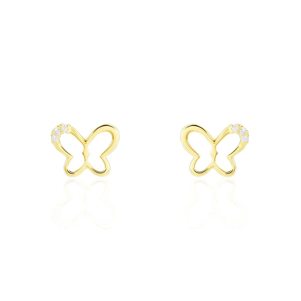Boucles D’oreilles Or Jaune 375/1000 Puces Papillons Oxyde De Zirconium