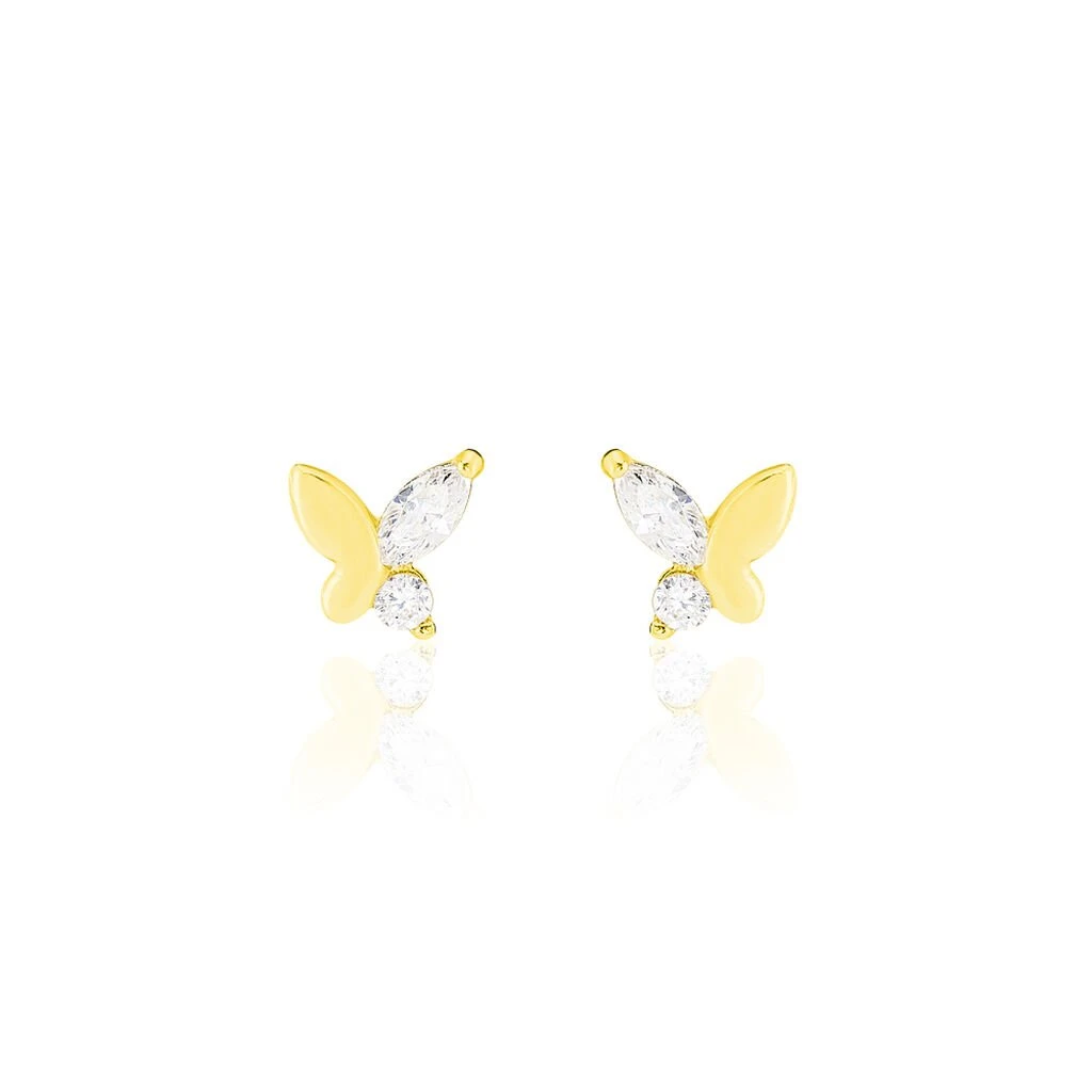 Boucles D’oreilles Puces Evaelle Papillon Or Jaune Oxyde De Zirconium