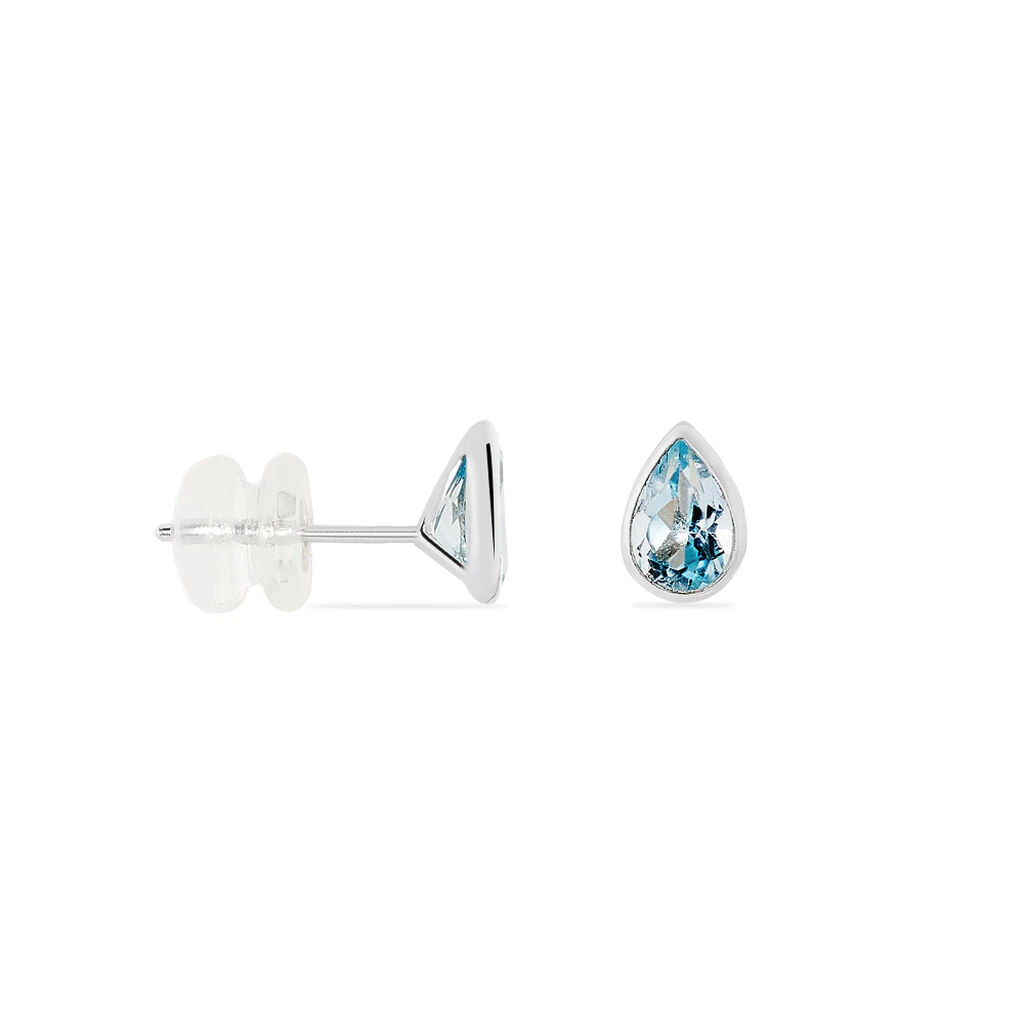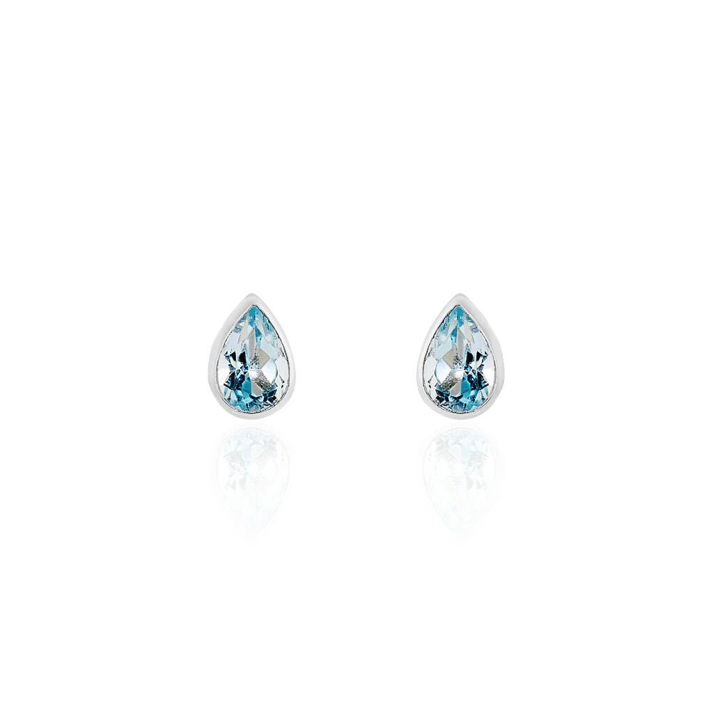 Boucles D’oreilles Puces Or Blanc 375/1000 Topazes Serties Clos Formes Poires