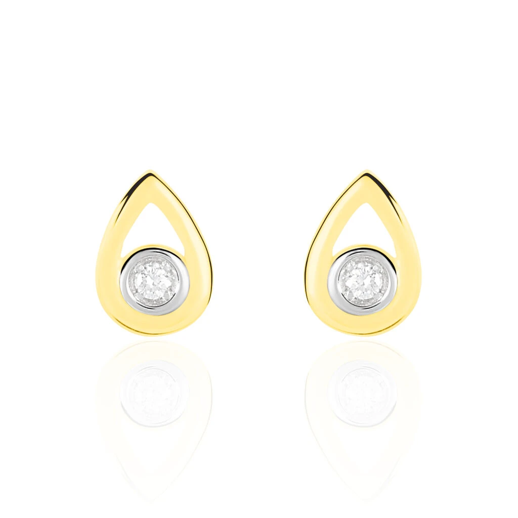 Boucles D’oreilles Or Jaune 375/1000 Puces Motifs Gouttes Ajoures Diamants Centraux 0.038ct