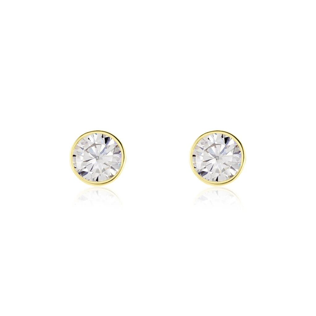 Boucles D’oreilles Puces Or Jaune 375/1000 Oxydes De Zirconium Clos 6mm