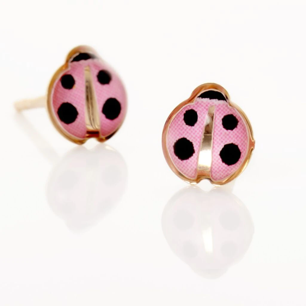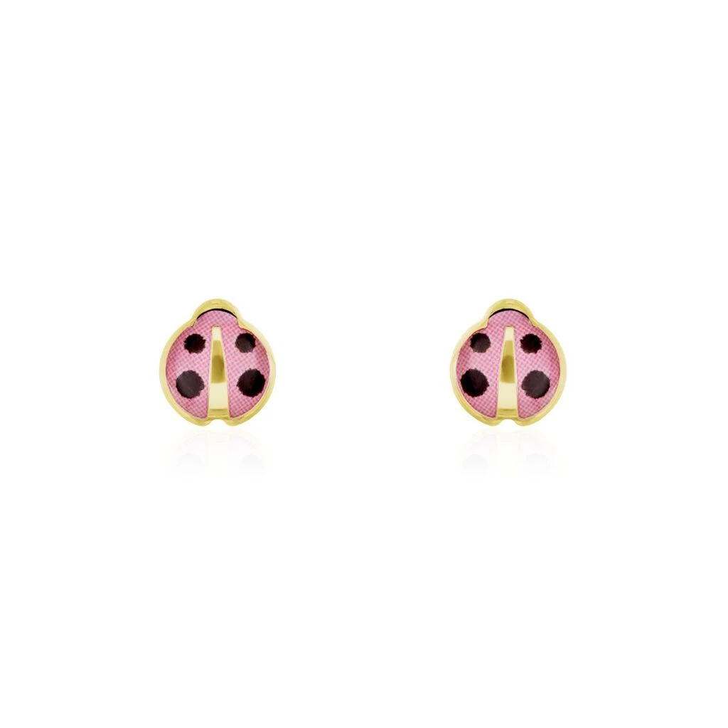 Boucles D’oreilles Or Jaune 375/1000 Coccinelles Roses
