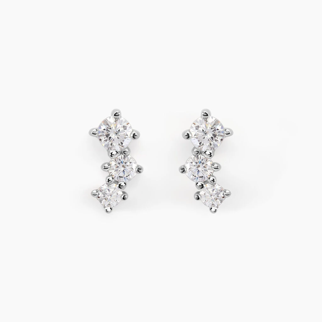 Boucles D’oreilles Puces Kyoto Or Blanc Oxyde De Zirconium