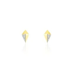 Boucles D’oreilles Or Jaune 375/1000 Formes Losanges Facettées Pavage Diamants
