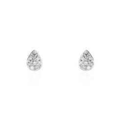 Boucles D’oreilles Or Blanc 375/1000 Goutte Microsetting Diamants