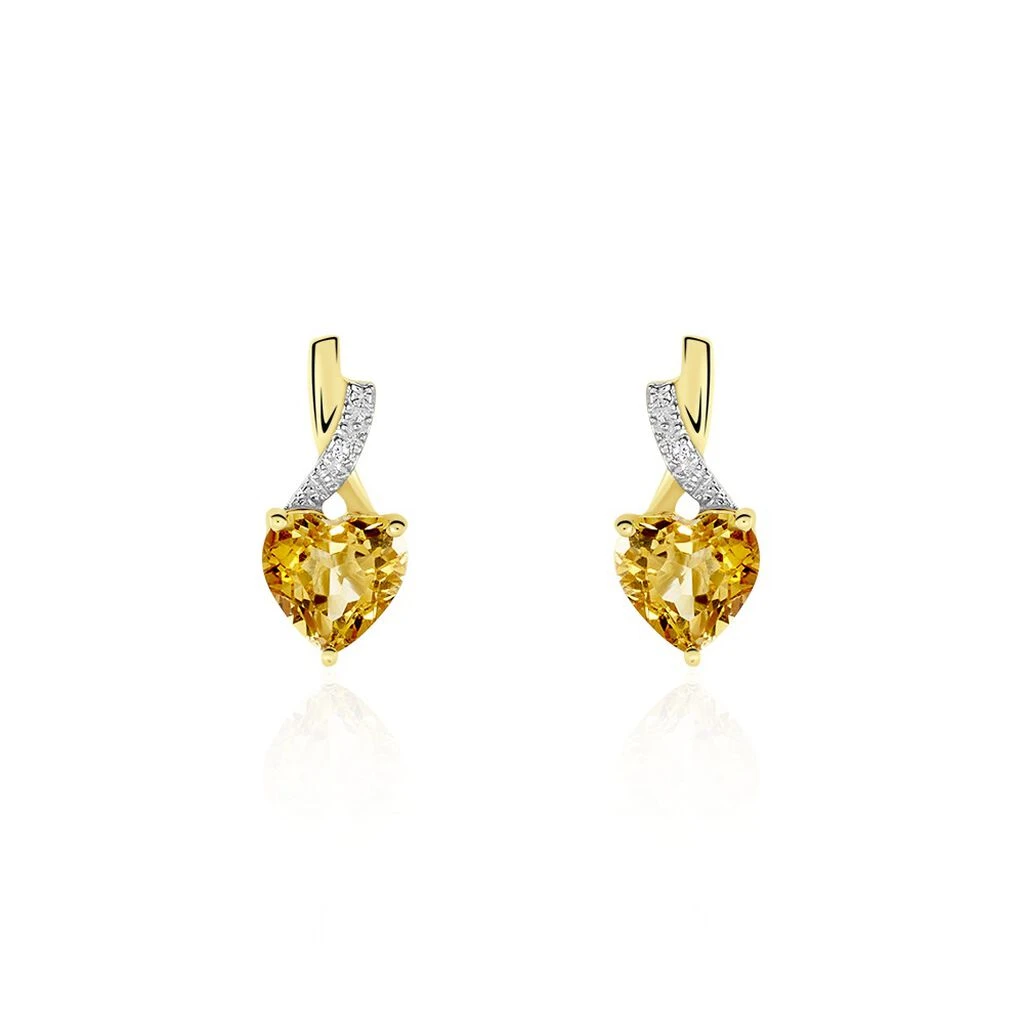 Boucles D’oreilles Puces Or Jaune 375/1000 Citrine Jaune Serti Griffes