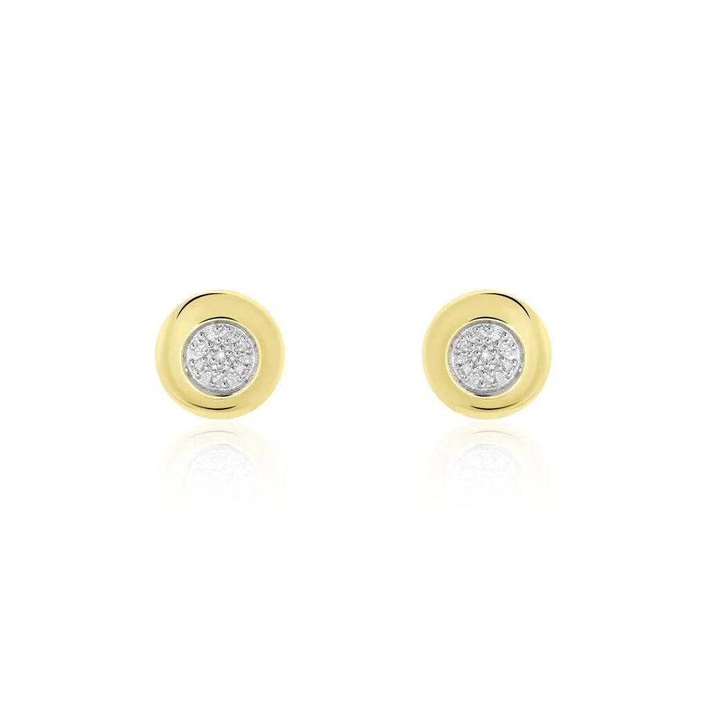 Boucles D’oreilles Puces Or Jaune 375/1000 Pastilles Pavages Diamants