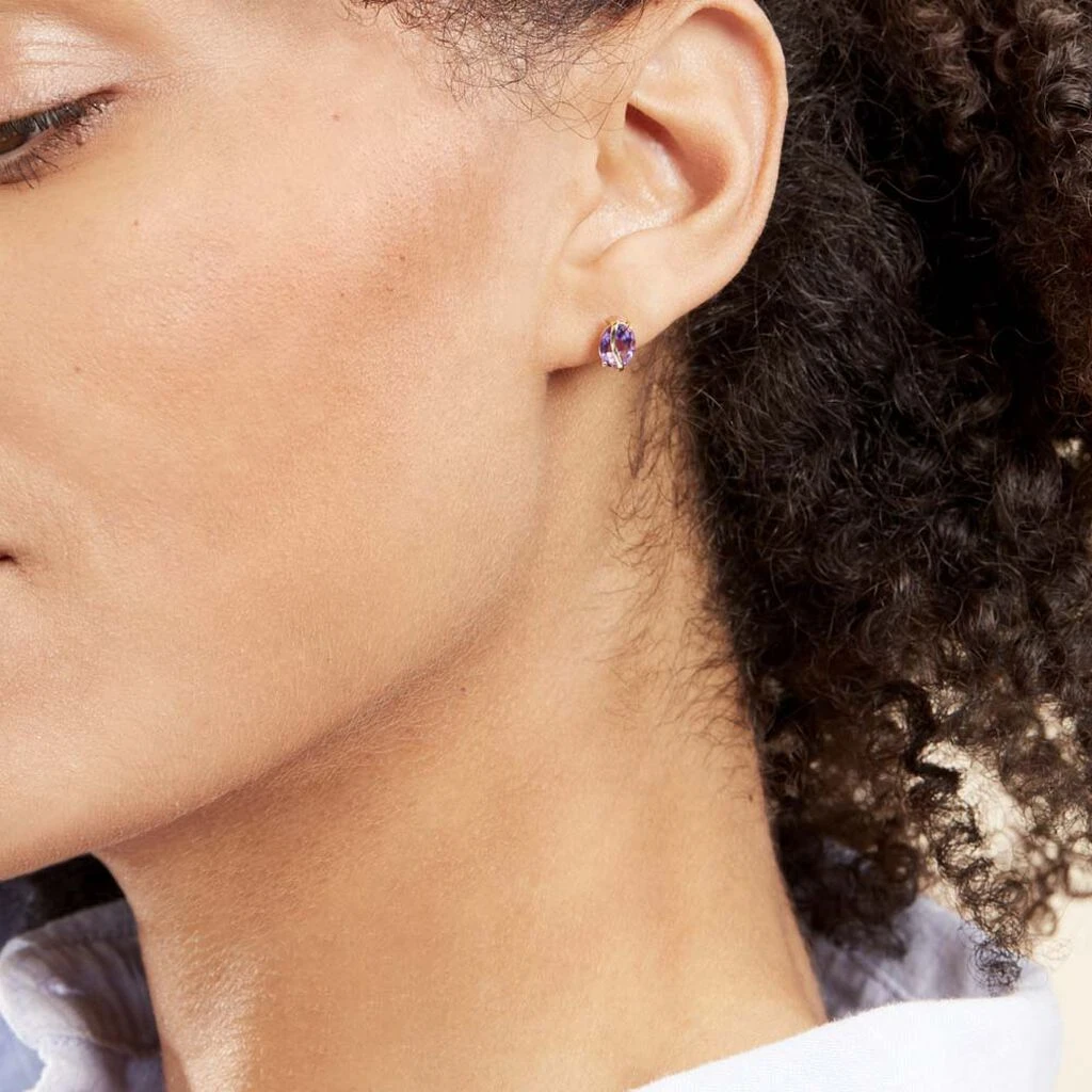 Boucles D’oreilles Puces Or Jaune Prudencia Améthystes