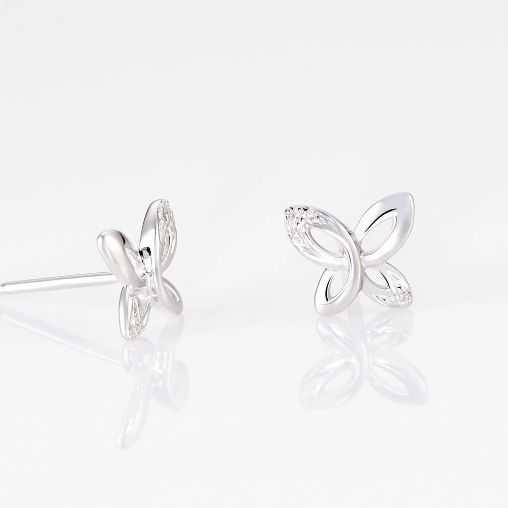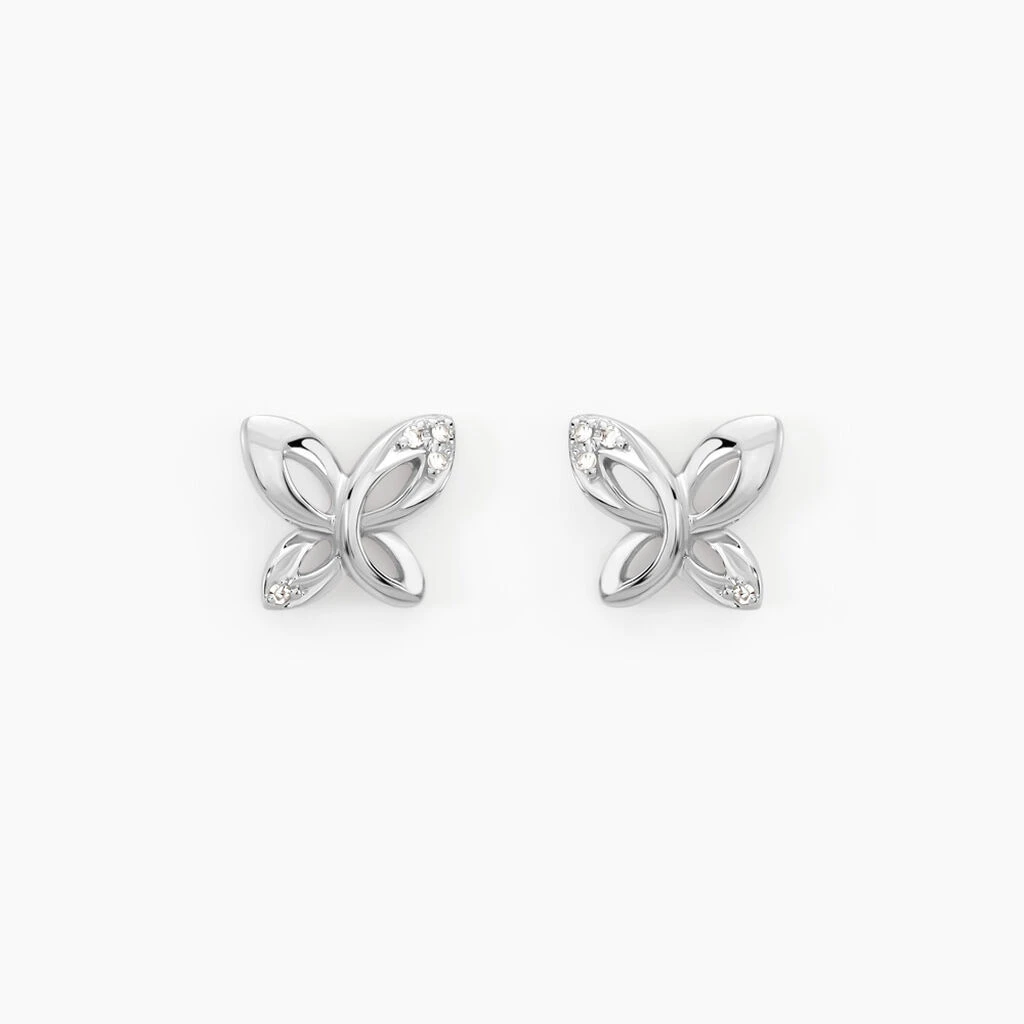 Boucles D’oreilles Puces Papillon Or Blanc Diamant