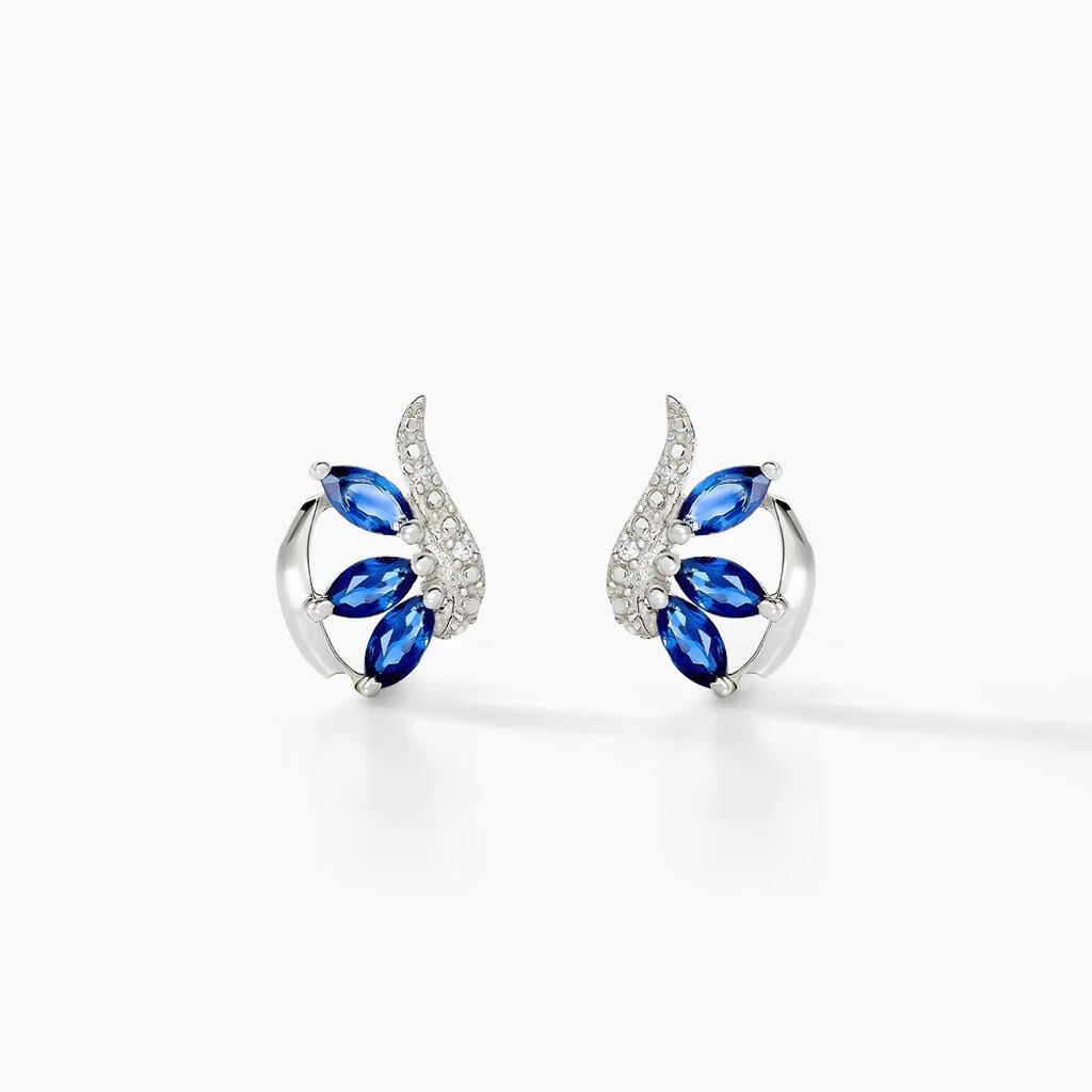 Boucles D’oreilles Puces Petale Or Blanc Saphir Et Diamant