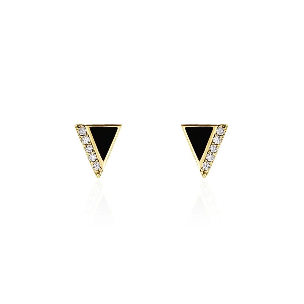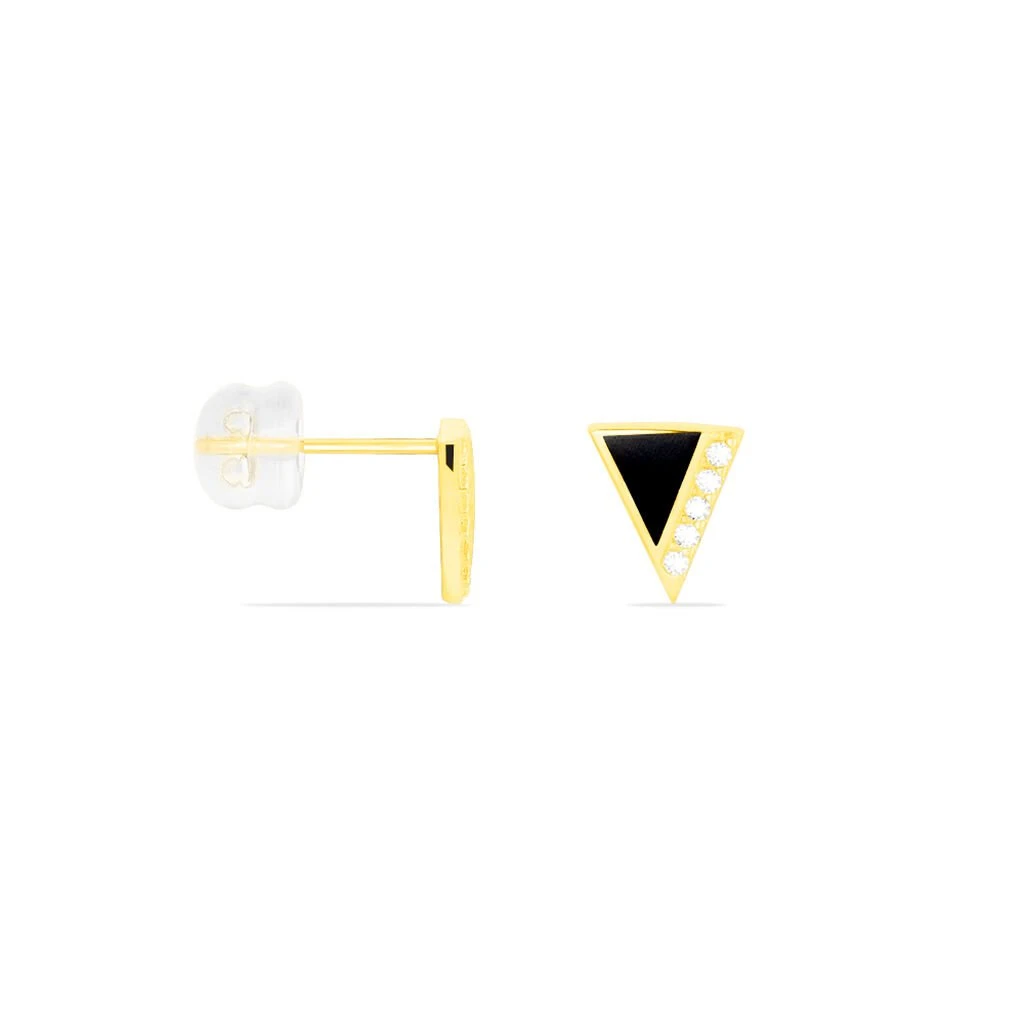 Boucles D’oreilles Or Jaune 375/1000 Triangles Email Noir Et Oxydes De Zirconium
