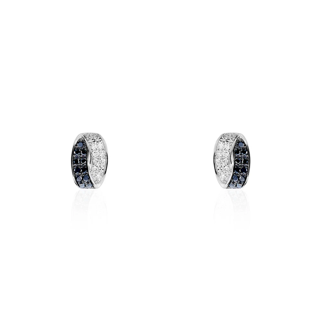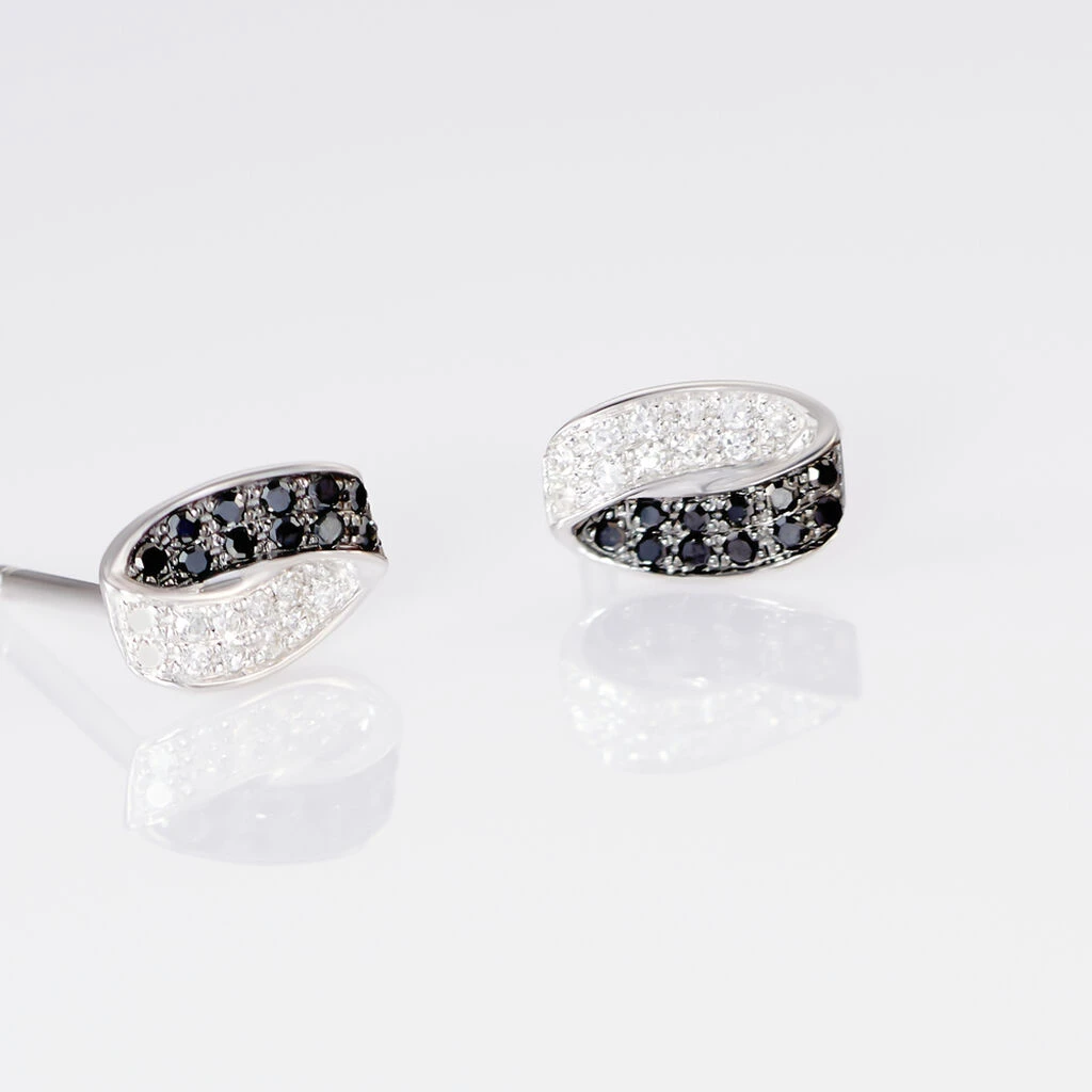 Boucles D’oreilles Or Blanc 375/1000 Diamant Blanc Et Diamant Noir Noeud Plat