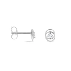 Boucles D’oreilles Or Blanc 375/1000 Saphir Simple Entourage Diamants Blancs Vassili Pm