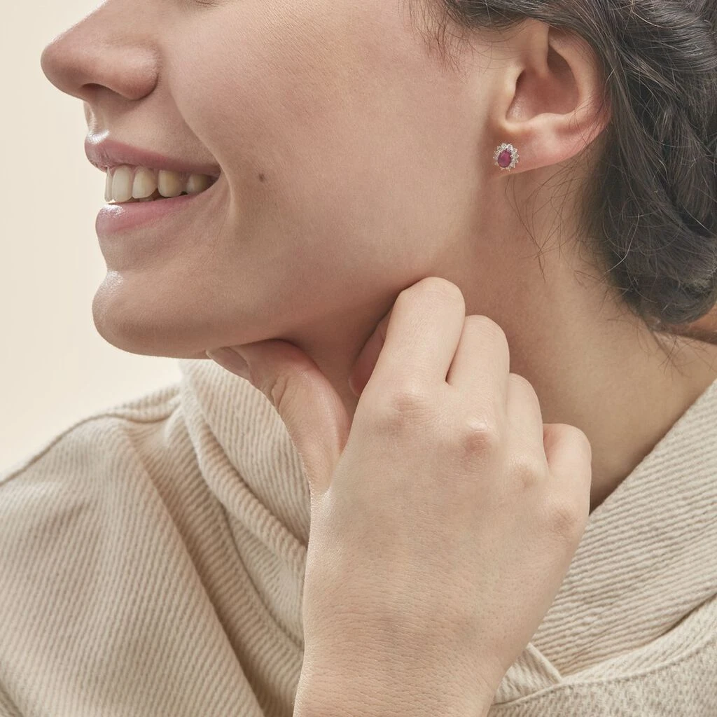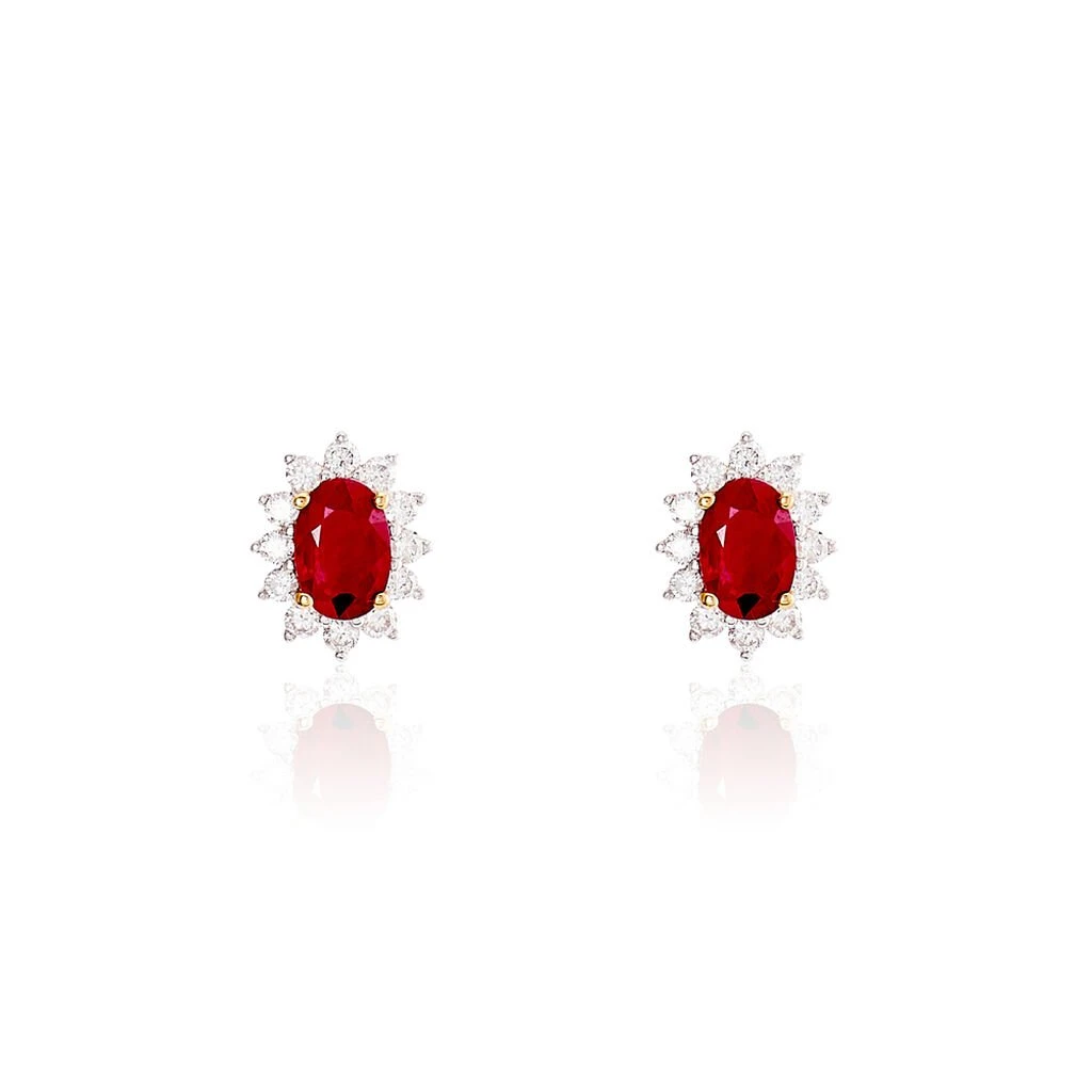 Boucles D’oreilles Or Jaune 375/1000 Rubis Simple Entourage Diamants Blancs Vassili Pm
