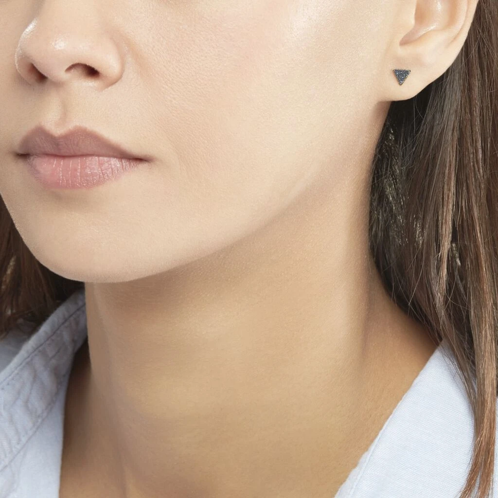 Boucles D’oreilles Or Jaune 375/1000 Puces Motifs Triangles Glitter Noir