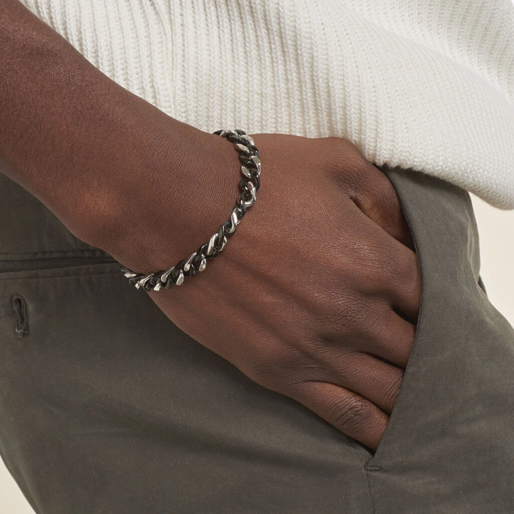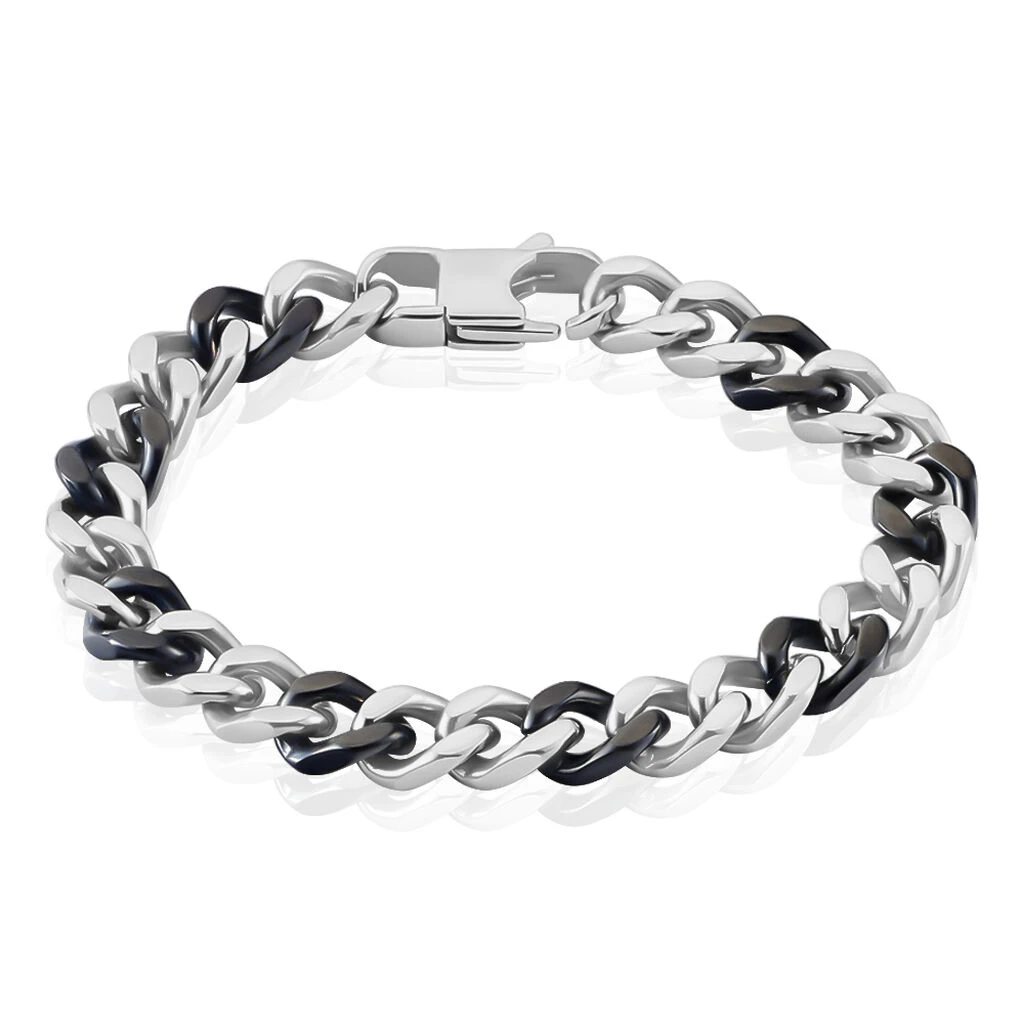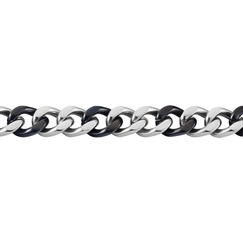 Bracelet Acier Noir Et Gris Maille Gourmette 21cm