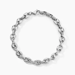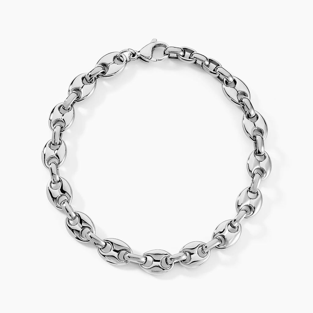 Bracelet Acier Blanc Maille Grain De Cafe 8mm 19-21cm