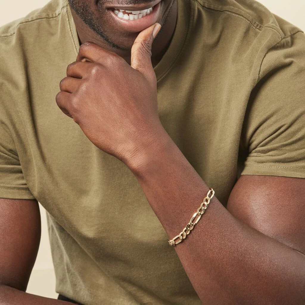 Bracelet Or Jaune 375/1000 Maille Alternée 1/3 8.10mm 21cm