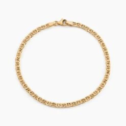 Bracelet Or Jaune 375/1000 Maille Marine Plate 4mm 20cm