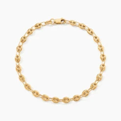 Bracelet Or Jaune 375/1000 Maille Grain De Café 3.8mm 18cm