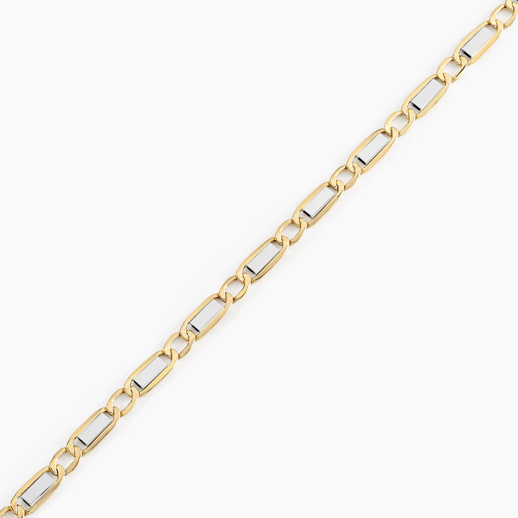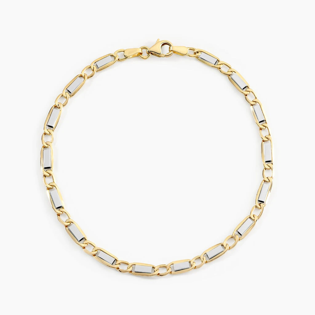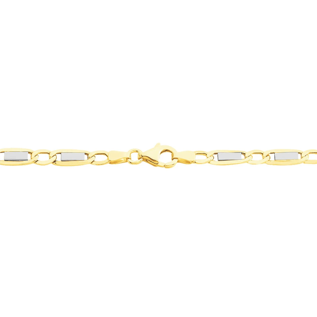 Bracelet Or Bicolore 375/1000 Maille Plaquette Alternée 1/1 4.5mm 21cm