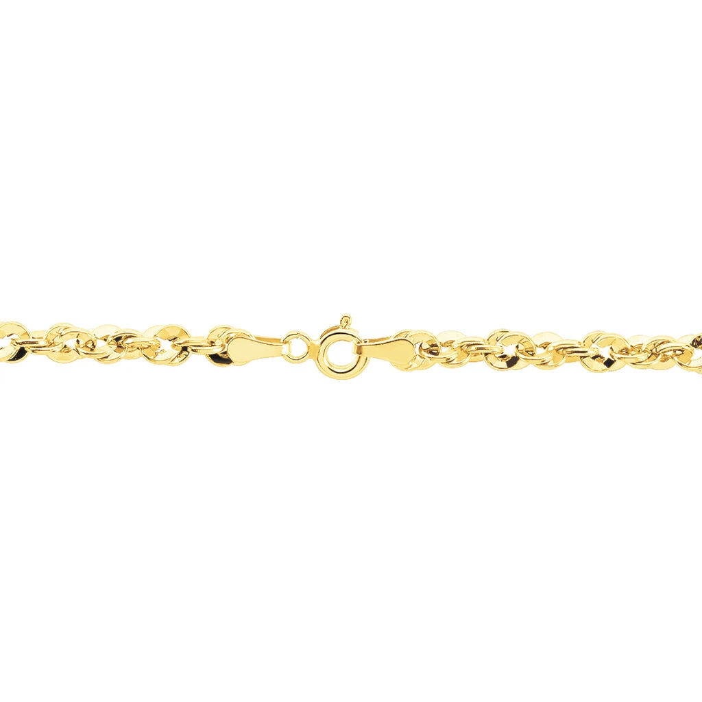Bracelet Or Jaune 375/1000 Maille Corde Facettée 3.8mm 18cm