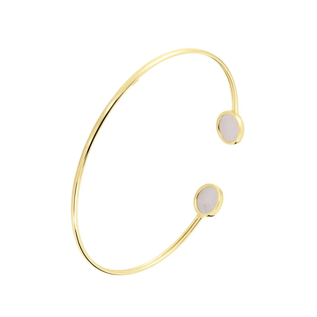 Bracelet Jonc Or Jaune 375/1000 Double Pastilles Calcedoine