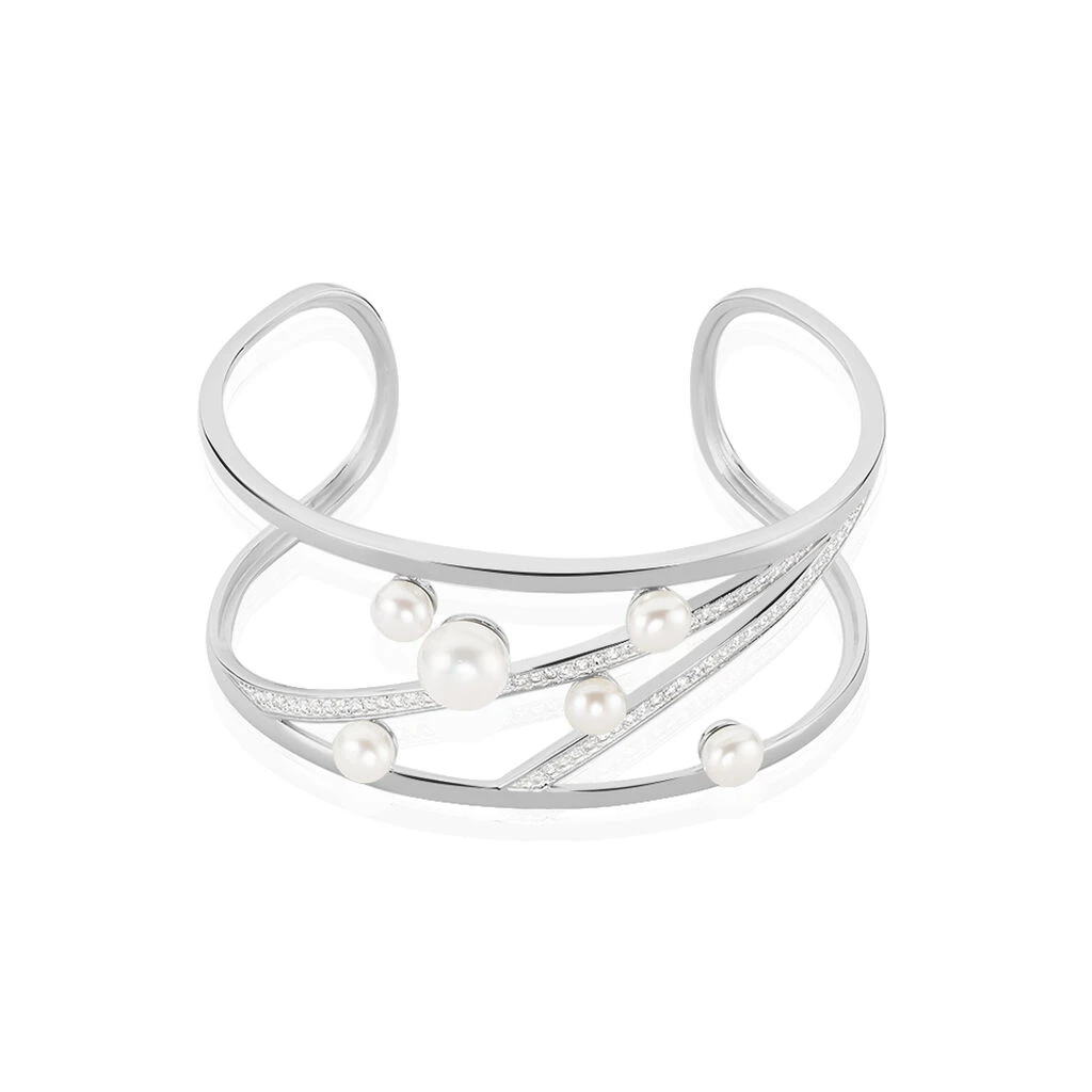 Bracelet Jonc Nissi Argent Blanc Perle De Culture Oxyde De Zirconium