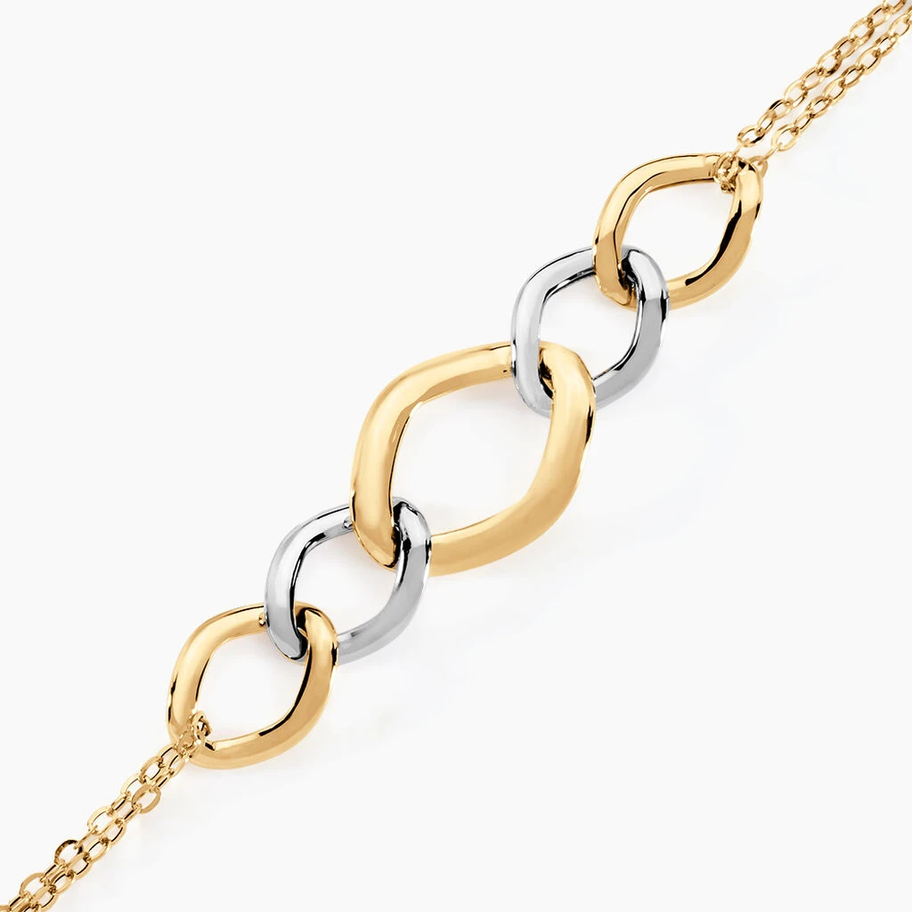 Bracelet Or Bicolore 375/1000 Maillons Maille Forcat 19cm