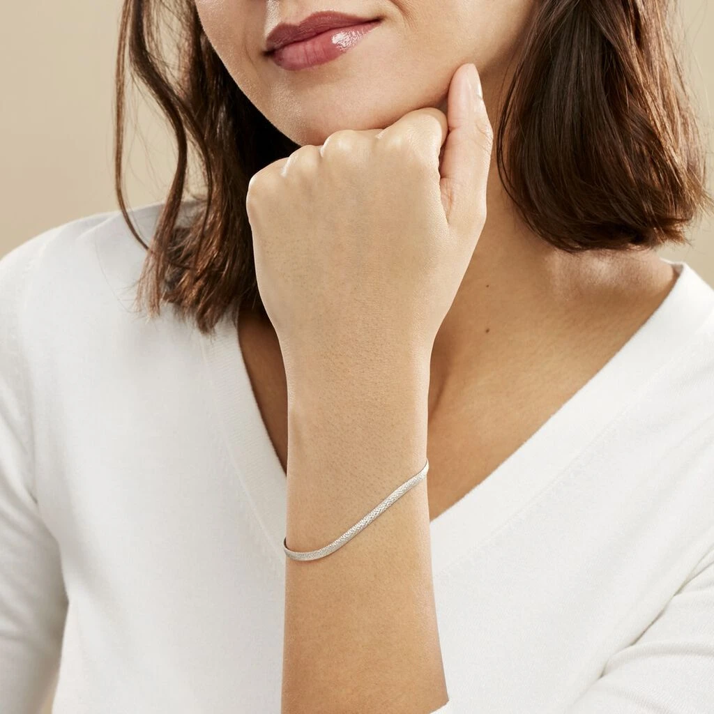 Bracelet Argent Blanc 925/1000 Maille Heringbone Diamantee Largeur 3mm 18cm