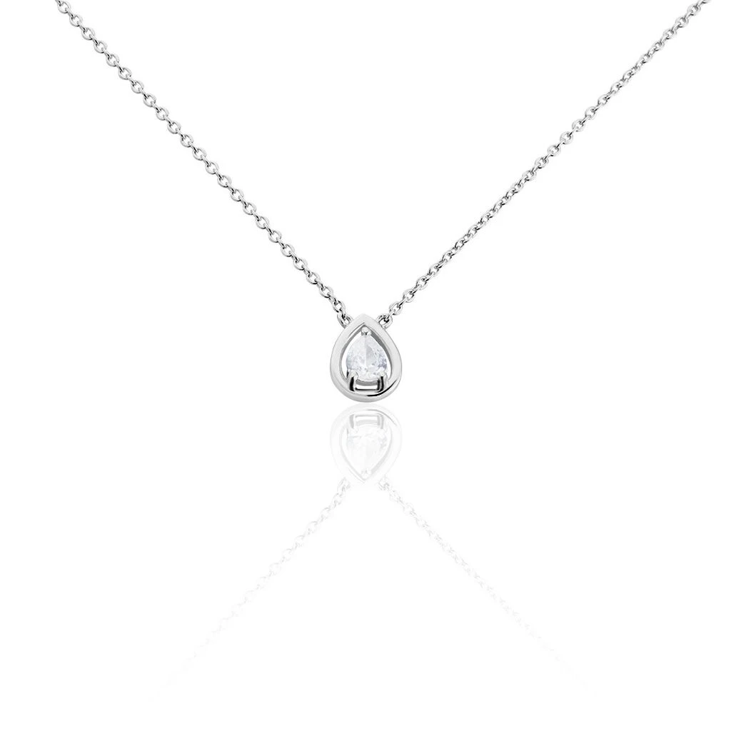 Collier Argent Blanc 925/1000 Goutte Sertis Griffes 1 Oxyde De Zirconium Maille Forcat 45cm