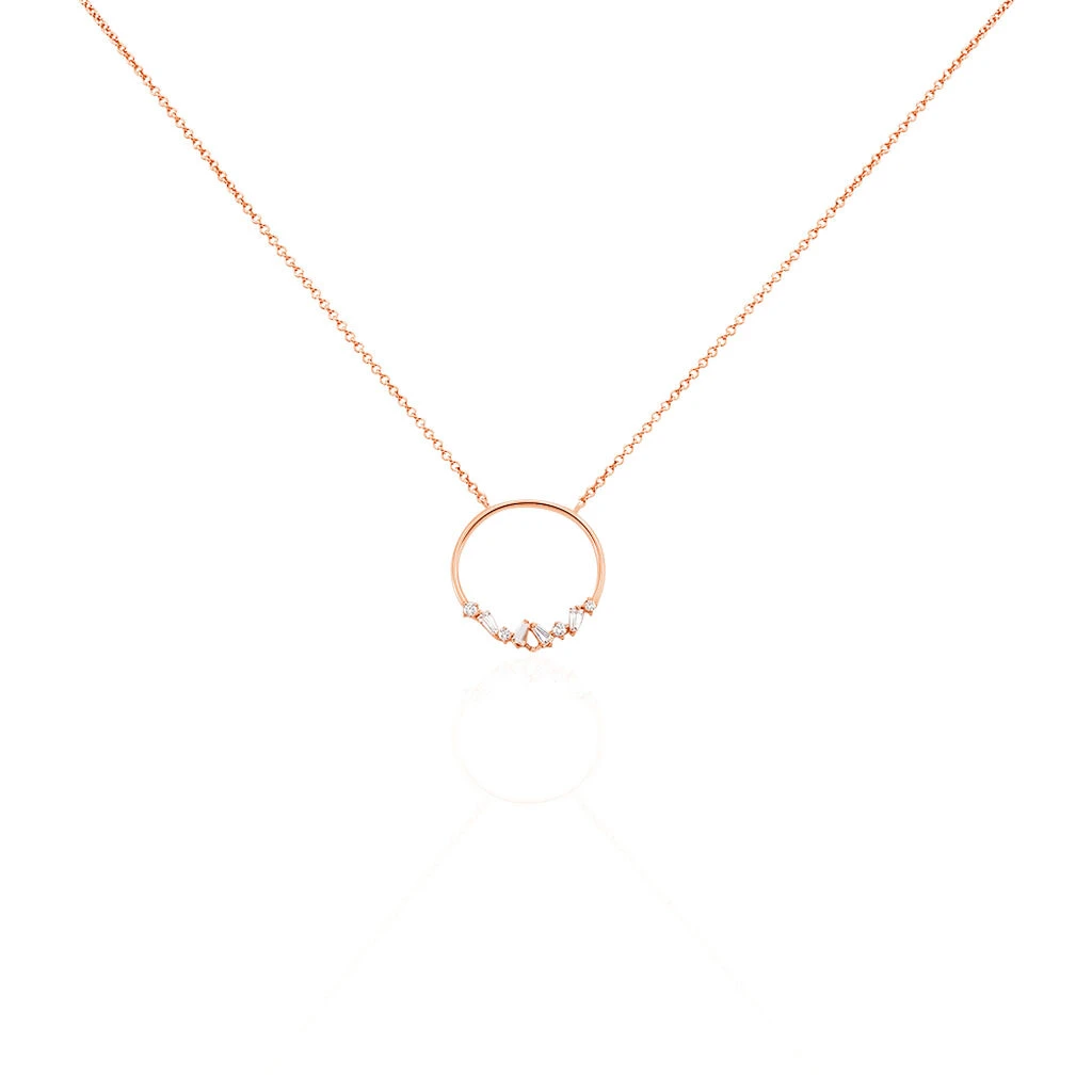 Collier Argent Rose 925/1000 Forme Cercle Bordure Navettes Cristaux Sertis Griffes Oxydes De Zirconium 50cm