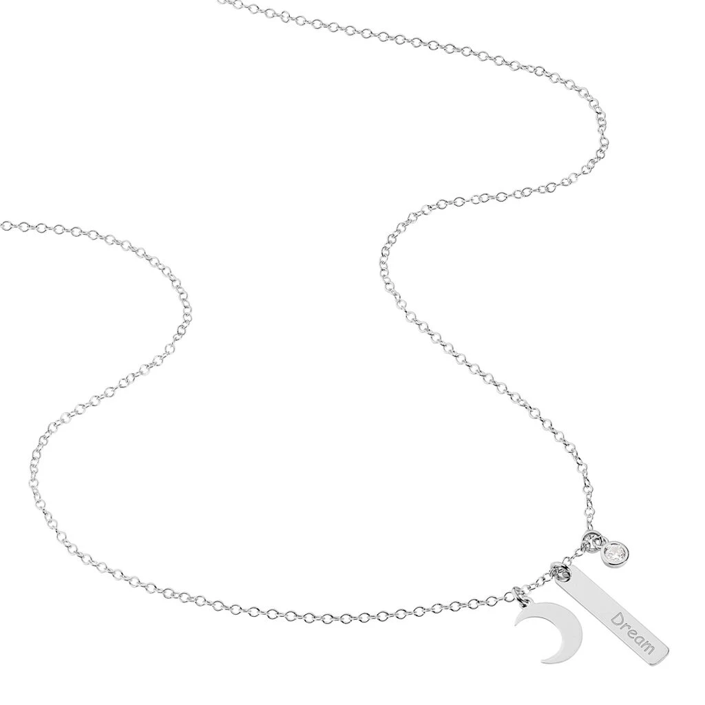 Collier Argent 925/1000 Plaque Dream + S Lune Et Oxyde 42cm