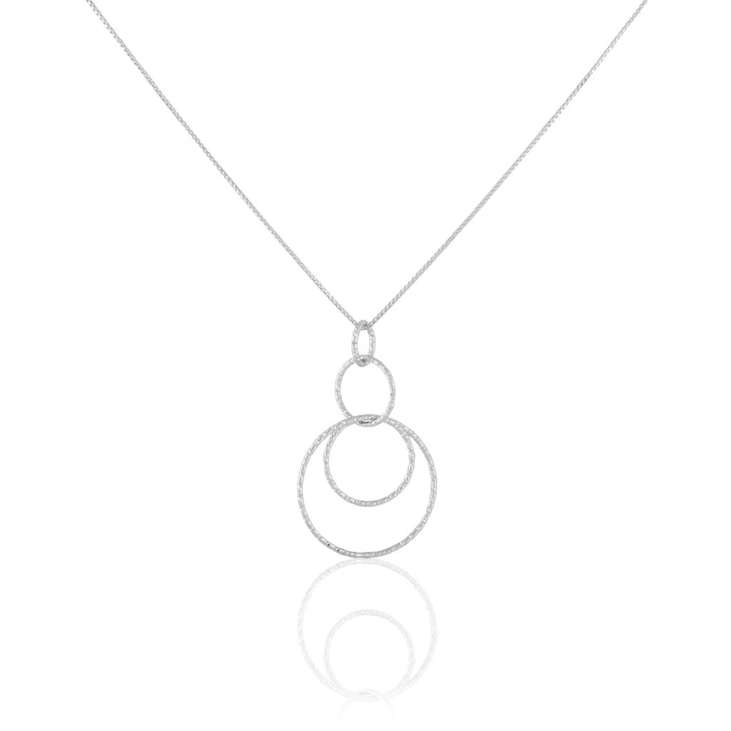 Collier Argent Blanc 925/1000 Cercles Ajoures Multiples Maille Venitienne 45cm