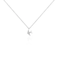 Collier Argent Blanc 925/1000 Motif Oiseau Pavage Oxydes De Zirconium 45cm